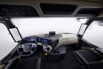 Mercedes’ Multimedia Cockpit Interactive 2 is standard in the eActros 600. This continuously informs the driver about the charge levels of the batteries, the remaining range and the current and average energy consumption.