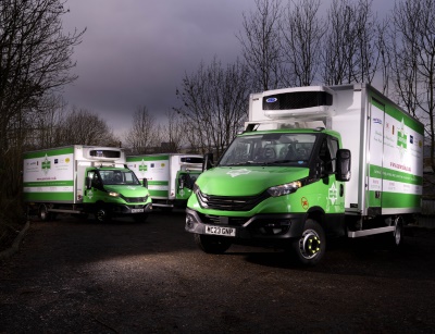 Supplied on contract hire by Dawsongroup truck and trailer, the 180 BHP Daily vehicles are all 4×2 Euro 6/CAZ-compliant, with Carrier Xarios 6 fridges on temperature controlled single compartment Paneltex bodies, allowing a 3.1t payload.