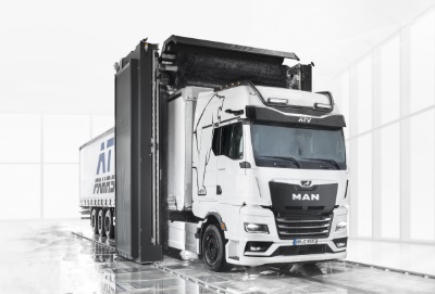 Large fleets require fast and effective washing technology, adds the company: the big challenge is performing a complete wash on the front, side, roof, and rear surfaces of the vehicle in order to minimise operating costs within a short wash time.