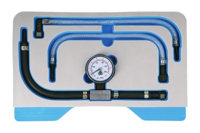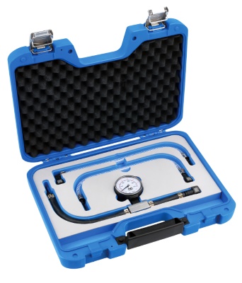 The test kit from Laser Tools (part number 8060) provides the gauge and connection pipes required to allow the