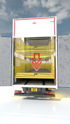 The Deck-Talk verbal feedback system for upper decks provides practical safety and status information in line with ISO hazard guidance, while an EBS-Safe (electronic braking system) warning system ensures a compliant ISO 7638 ABS/EBS connection, enhancing safety. The trailer is also equipped with a Haldex TEM Parksafe valve to help prevent rollaway incidents, and LowGlide Coupling to enable the driver to couple from ground level, thereby eliminating risks associated with climbing onto the catwalk. Banksman downlighters enhance visibility around the trailer in poor light conditions, while a 3.3m long pneumatic ramp provides easy access from the lower deck to the swan-neck area.