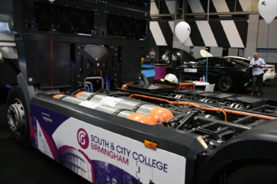 One of the first hydrogen trucks to be purchased by a training college was on display at the Commercial Vehicle Show