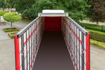 “It helps to strengthen the superstructure, so that the EN 12642 XL standard is met. This standard encourages the trailer builder and parts manufacturer to develop new and better products for a stronger and safer trailer. The Carapax roof tarpaulin can be recognised on the inside by the diagonal line structure.”